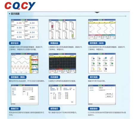 Maksymalnie 48 uniwersalnych ekranu kolorowego bezpapierowego rejestratora, może wprowadzać prąd stały, częstotliwość napięcia stałego, milivolt, termopar, opór cieplny, próżnię i inne sygnały.Ma funkcje rozdzielczości wyjścia czujnika, wyjście alarmowe przekaźnika, wyjście transmisji, obliczenie / raport produktu przepływu, przeniesienie danych historycznych, drukowanie w terenie, komunikacja seryjnej i komunikacja Ethernet.
